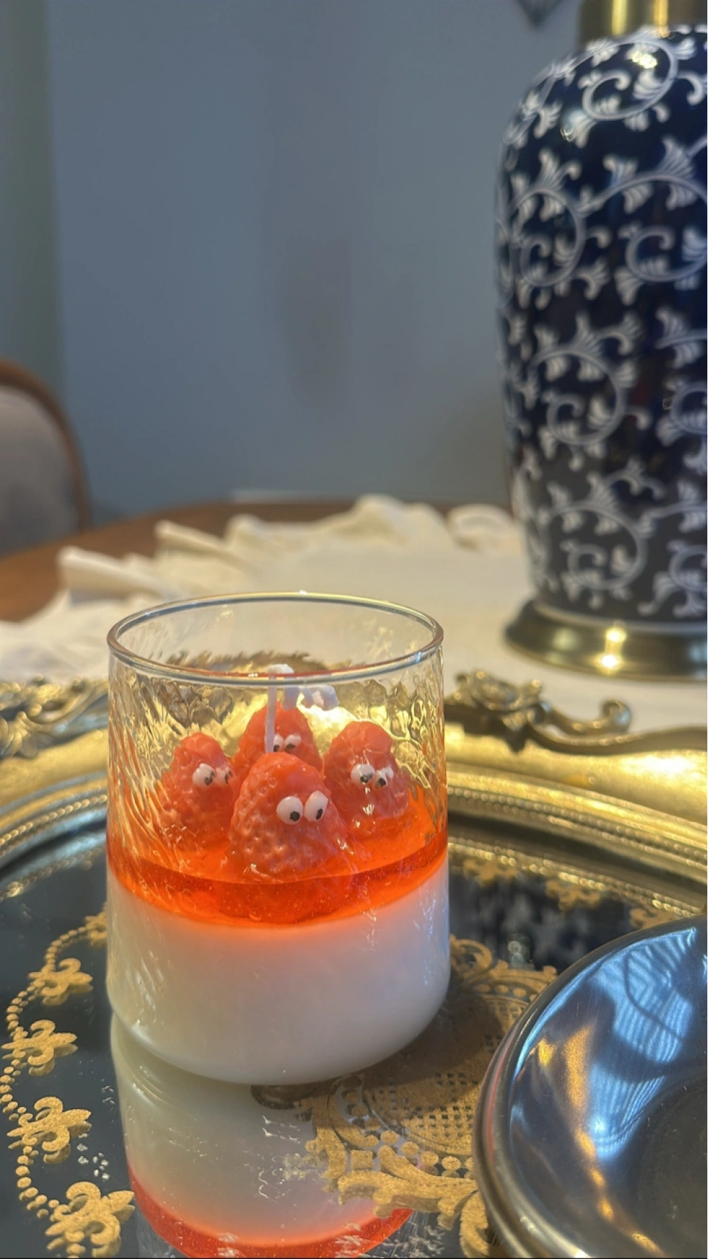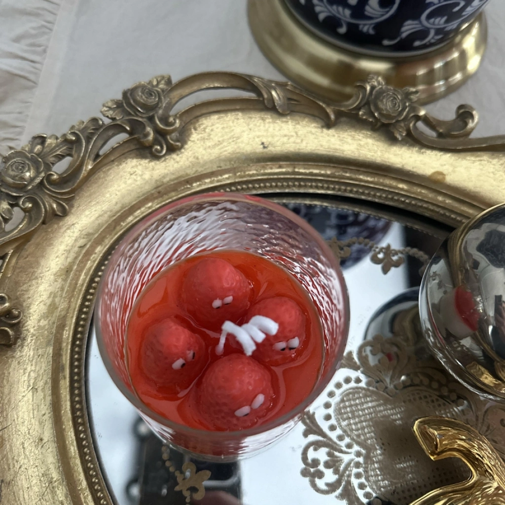 Tatlı bir anın içindeymiş gibi hissettiren bu özel tasarım mum, kremamsı beyaz alt katmanı ve üzerindeki canlı kırmızı meyve dokusuyla göz alıcı bir şıklık sunar. Eğlenceli detaylarla tasarlanan üst katman, bulunduğu ortama hem neşe hem de sıcak bir ambiyans katar.